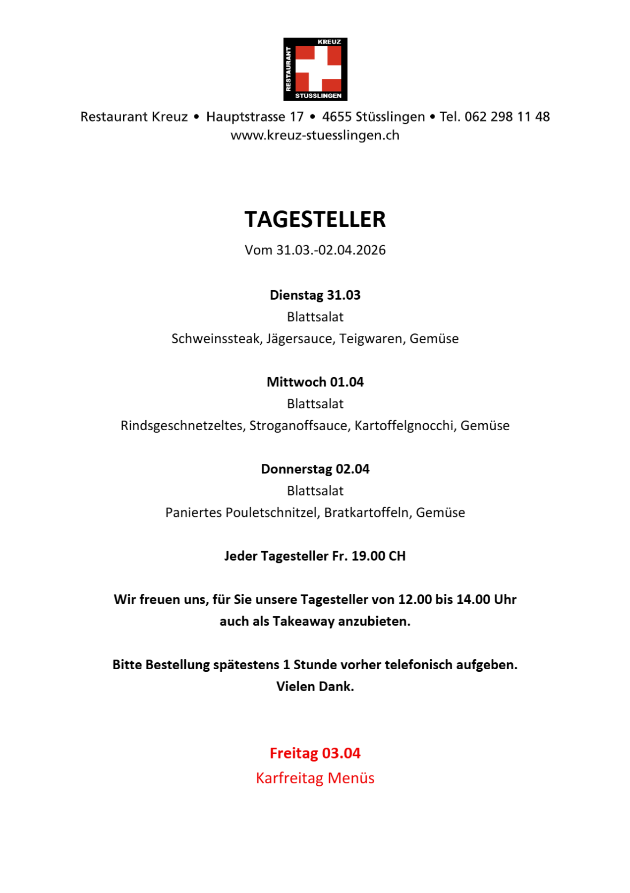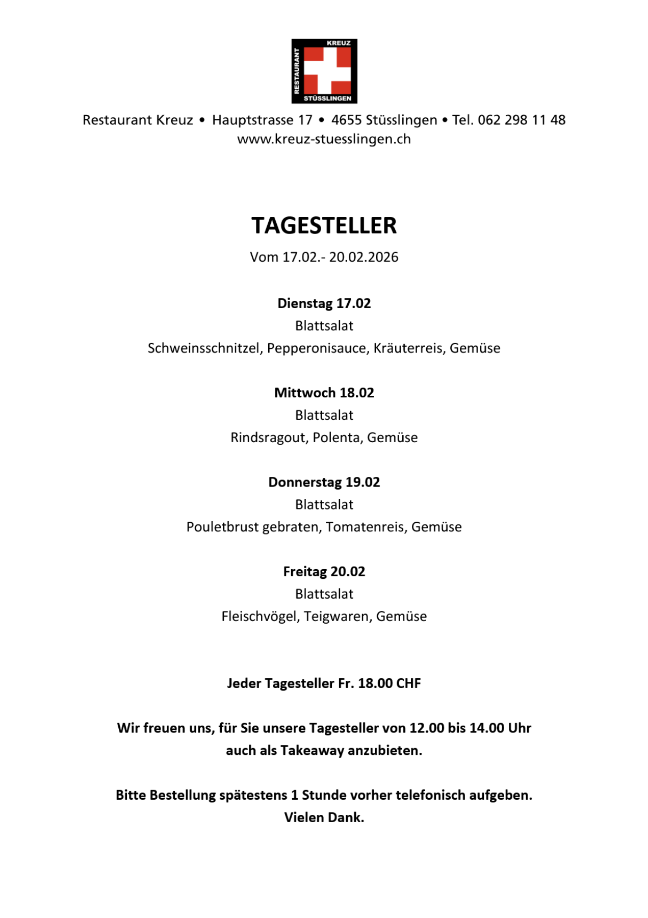 Es freut uns, Ihnen auch weiterhin unseren Takeaway-Service anbieten zu dürfen.